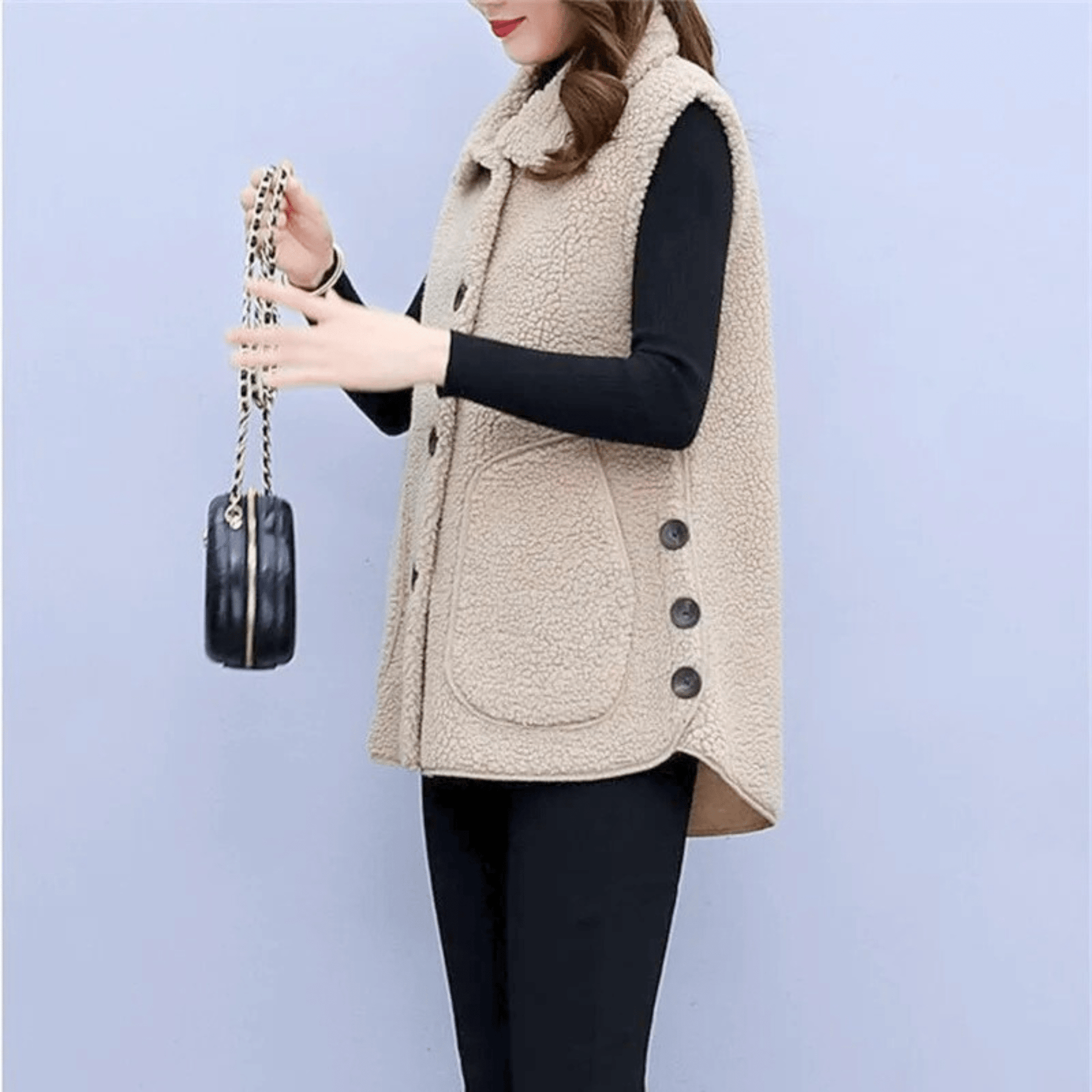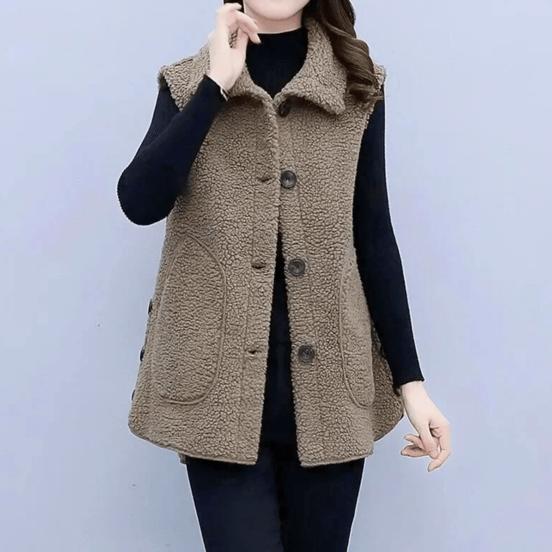 Featuring a luxurious wool blend and a flattering, tailored fit, combining warmth with modern style, while its sleek, sleeveless design ensures you stay stylish and comfortable.